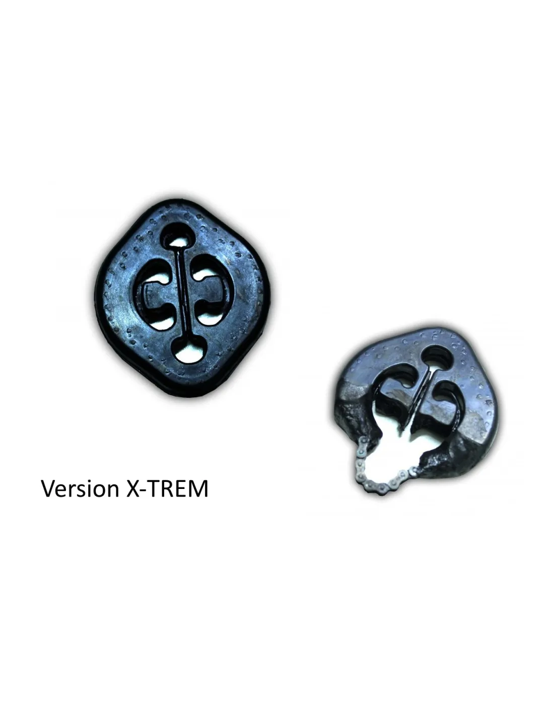 Pour accrocher votre ligne d'échappement, nous vous proposons les silent-blocs d'échappements pour véhicule de compétition. Fabriqué dans un silicone de haute qualité, ce silent-bloc est prévu pour résister aux conditions les plus extrêmes comme le rallye ou autre sport automobile. Pour des conditions encore plus extrême nous vous proposons un silent bloc moulé autour d'une chaîne.