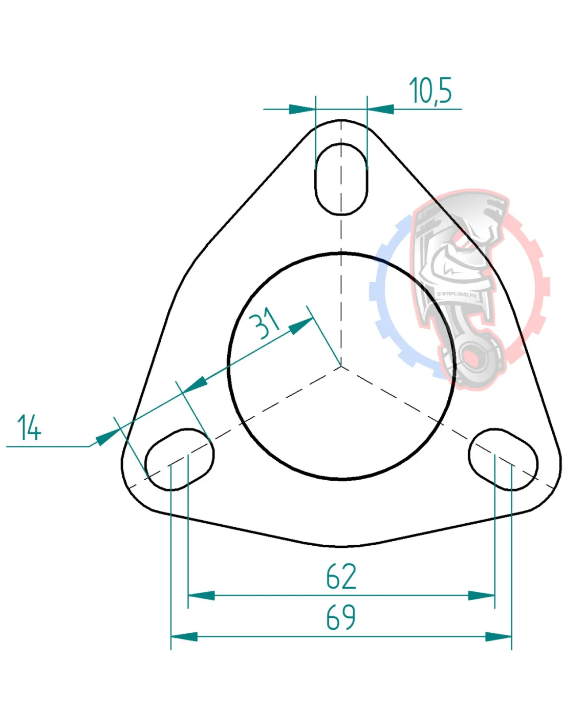 Dimensions bride d'échappement 3 trous Powersprint Ø 50 mm