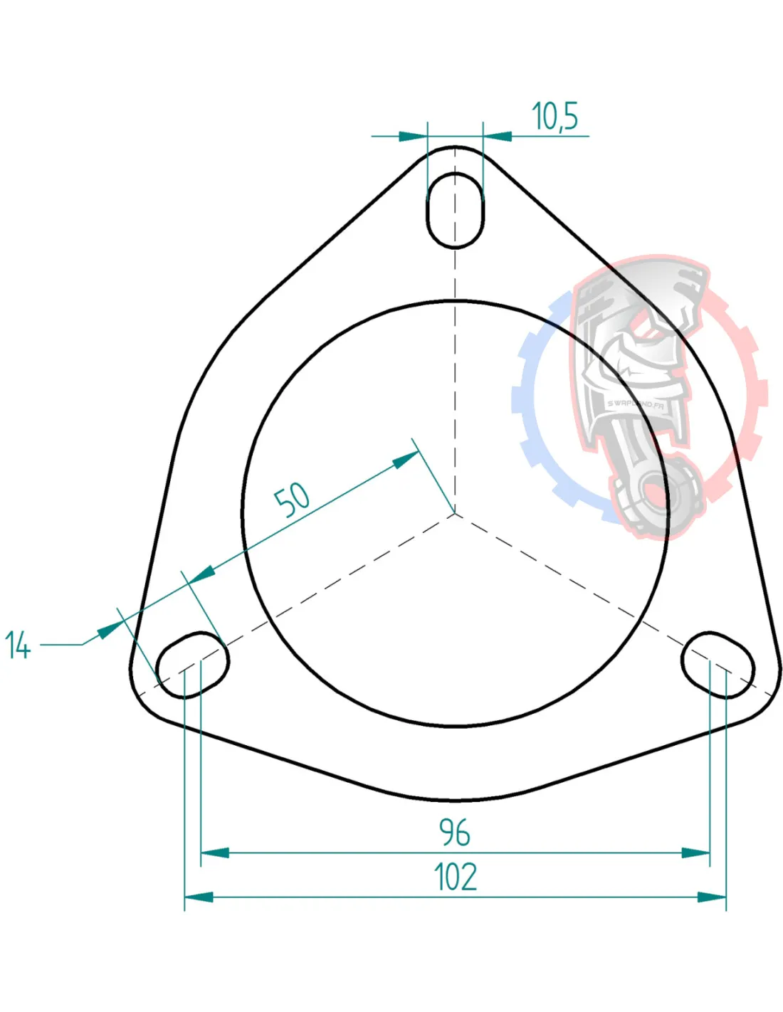 Dimensions bride d'échappement 3 trous Powersprint Ø 80 mm