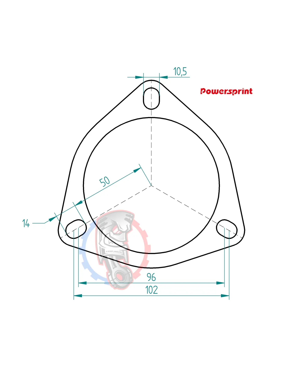 Bride d'échappement Powersprint 3 trous diamètre 89 mm épaisseur 8 mm