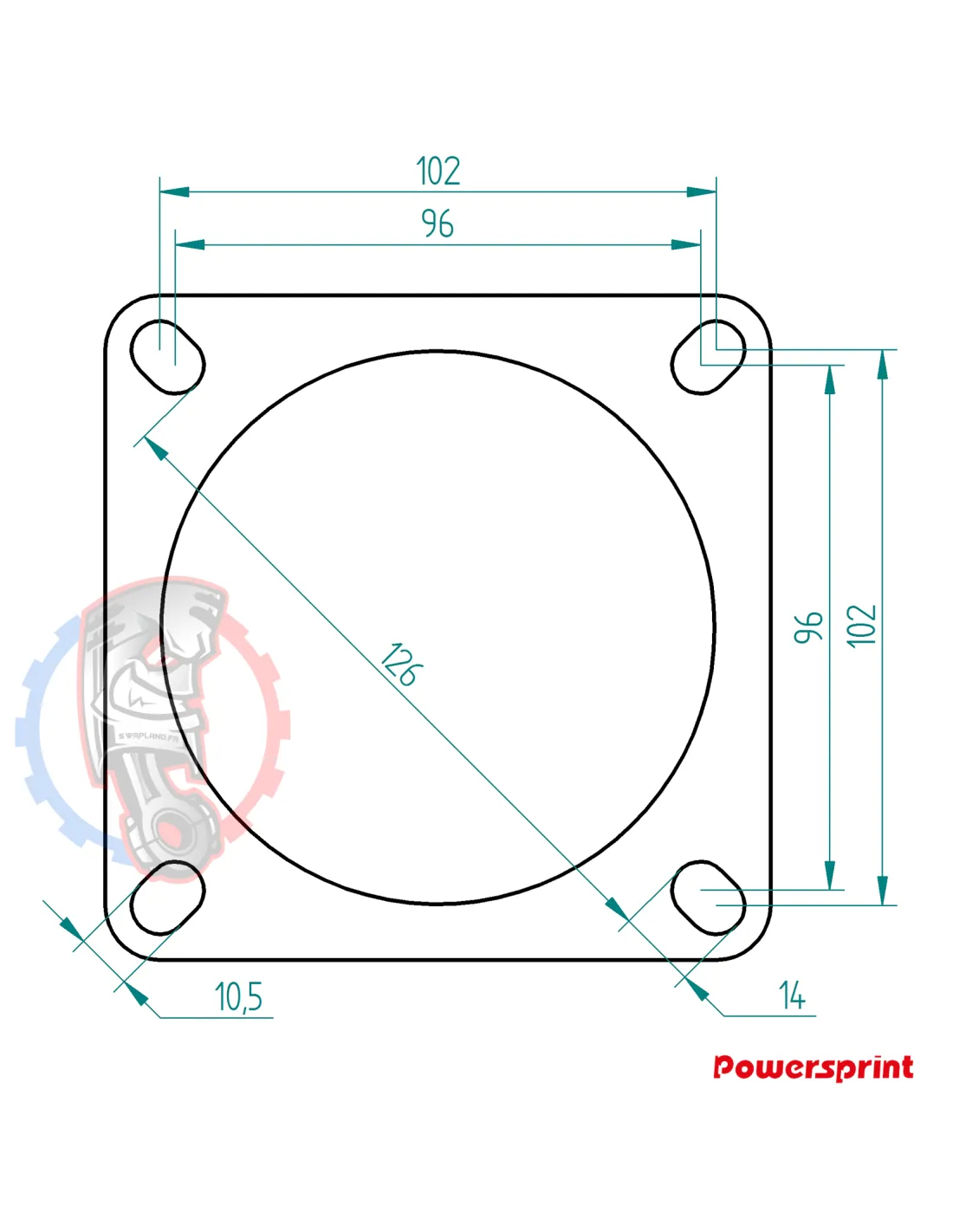 Bride d'échappement Powersprint 4 trous diamètre 101,6 mm épaisseur 8 mm