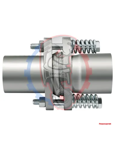 Découpé au laser et galvanisé le raccord d'échappement est fourni avec deux brides, deux vis, deux ressorts et un joint pour une bonne étanchéité. Idéal pour les moteurs puissants avec un couple élevé le compensateur Powersprint résiste à de fortes charges à la torsion.