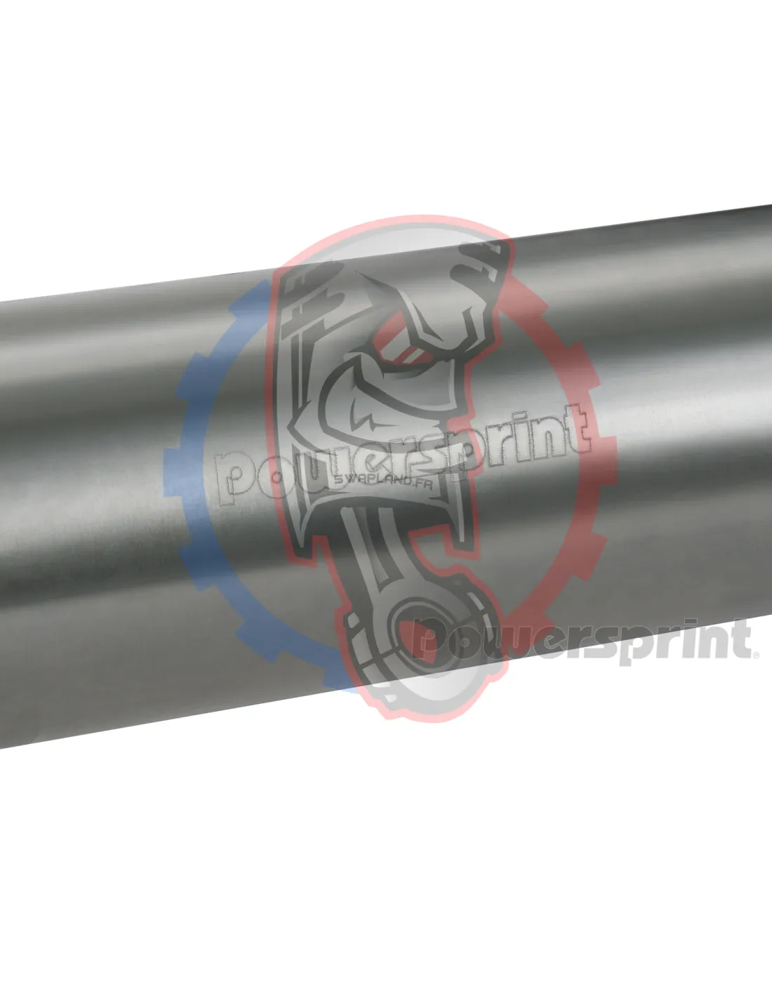 Issu de la série Powersprint MISSILE RACING le pot d'échappement Powersprint a pour diamètre 76 mm en entrée et en sortie. Il convient pour un montage ou l'espace est restreint. ATTENTION le diamètre de raccordement spécifié est le diamètre intérieur d'un côté et le diamètre extérieur de l'autre.