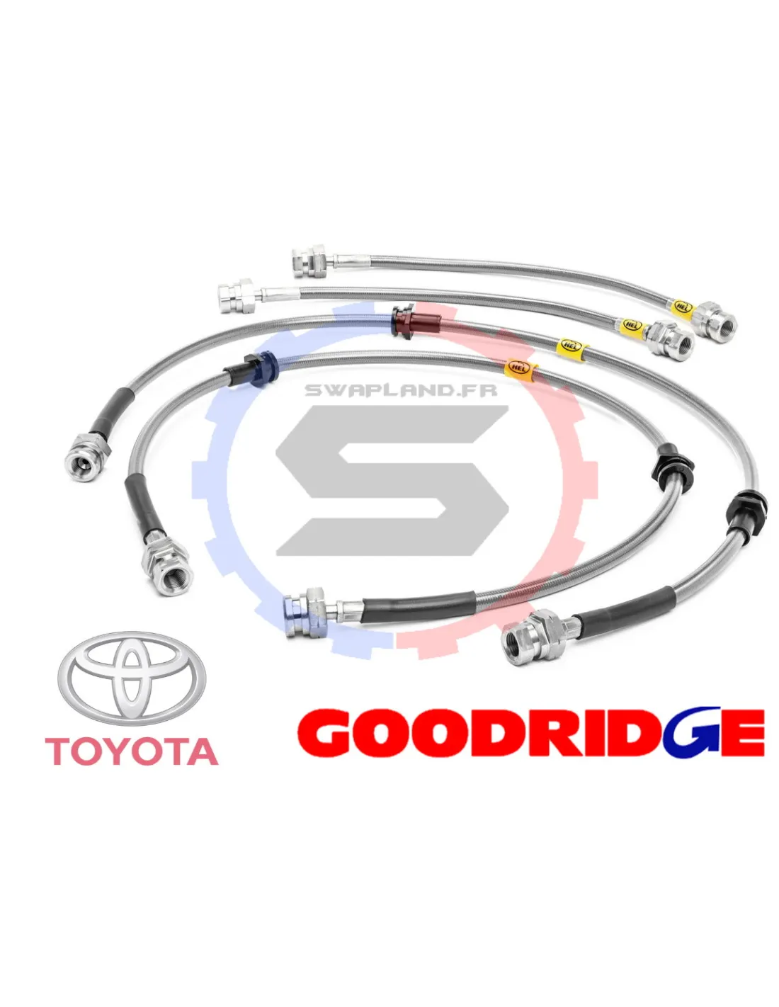 Kit 4 durites de frein aviation Goodridge Toyota Yaris (Excl. Sport) Ar Tambour 2001>