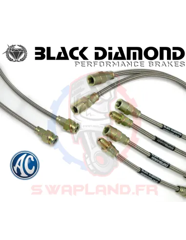 Contrôlez et améliorez le freinage avec les durites aviation Black Diamond pour AC Cobra . Le kit durites aviation se monte en lieu et place de l'origine. Les durites Black Diamond assurent un freinage fiable, précis et efficace.
