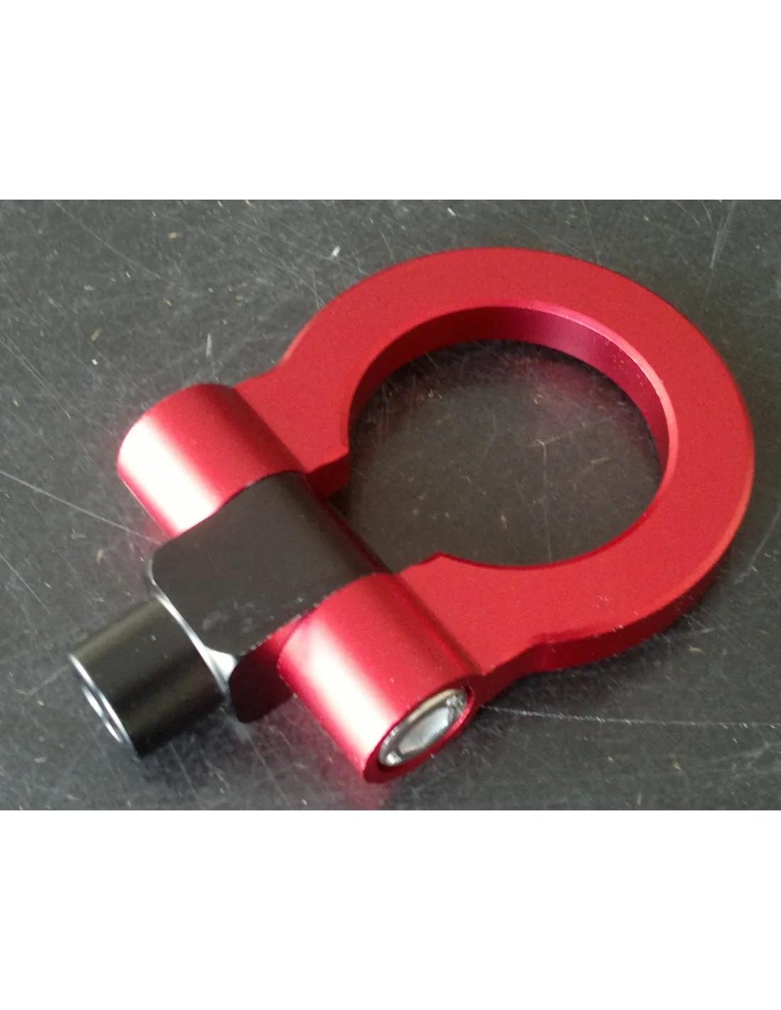 Crochet de remorquage anodisé rouge ou noir.