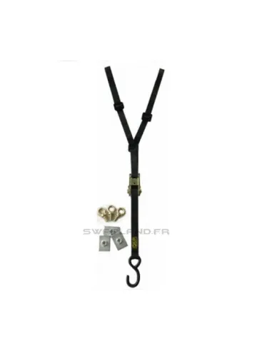 Cette sangle universelle sert à serrer votre roue de secours. Elle sera livrée avec trois plaques en acier haute résistance et trois œillets. Avec son attache rapide cette sangle de secours est idéale pour la piste ou le rallye.