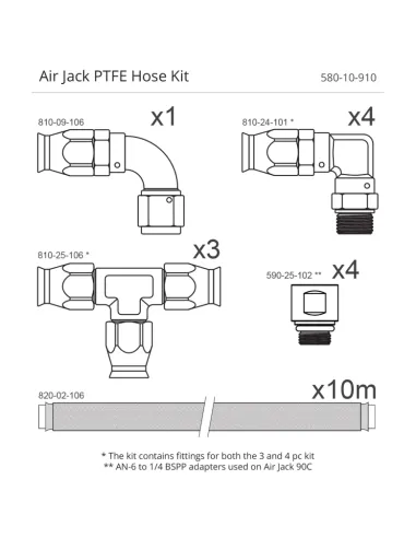 * Seulement 3 piÚces sont utilisées sur un kit de cric pneumatique 3 piÚces, la 4Úme n'est pas nécessaire