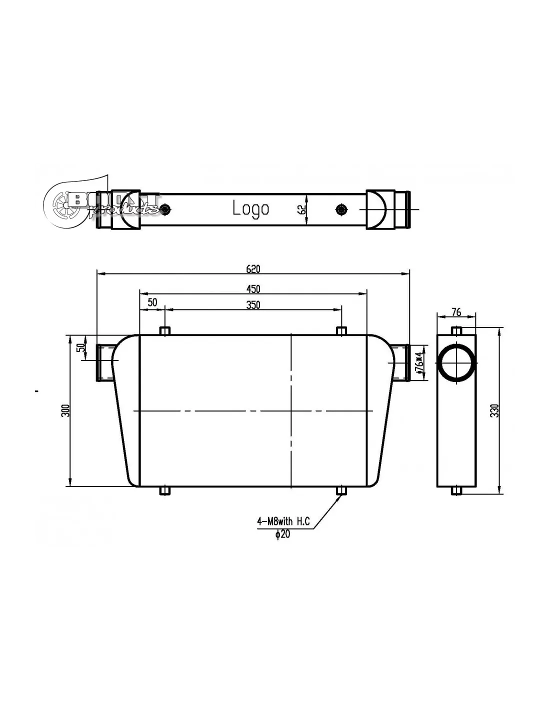 Echangeur Intercooler 450x300x76mm – Ø76mm