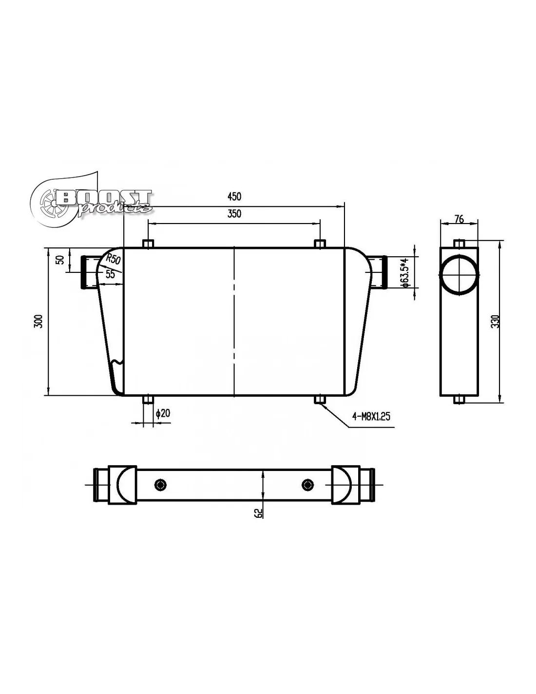 Echangeur Intercooler 450x300x76mm – Ø63mm