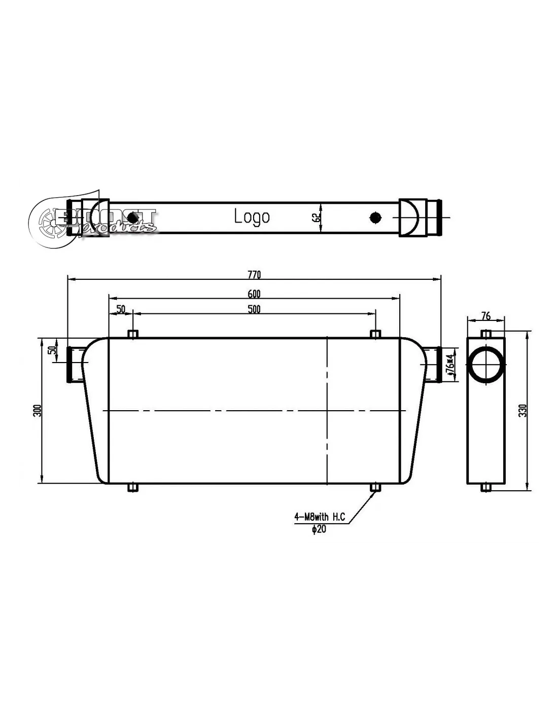 Echangeur Intercooler 600x300x76mm – Ø76mm