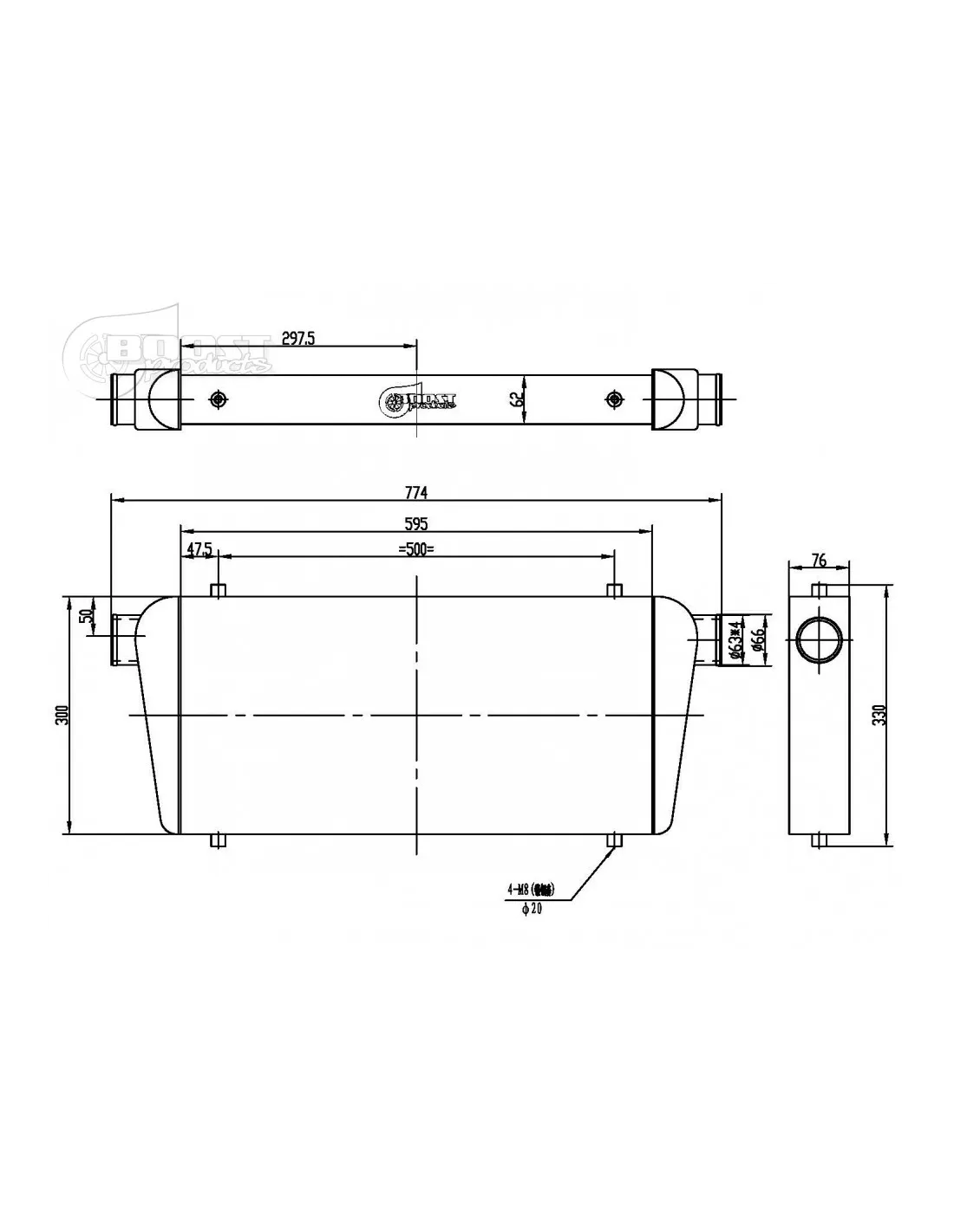 Echangeur Intercooler 600x300x76mm – Ø63mm