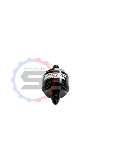 Filtre d'alimentation en huile Turbosmart pourTurbo avec filtre à tamis lavable en inox avec un disque plissé de 44 microns. Entrée et sortie mâle en dash 3