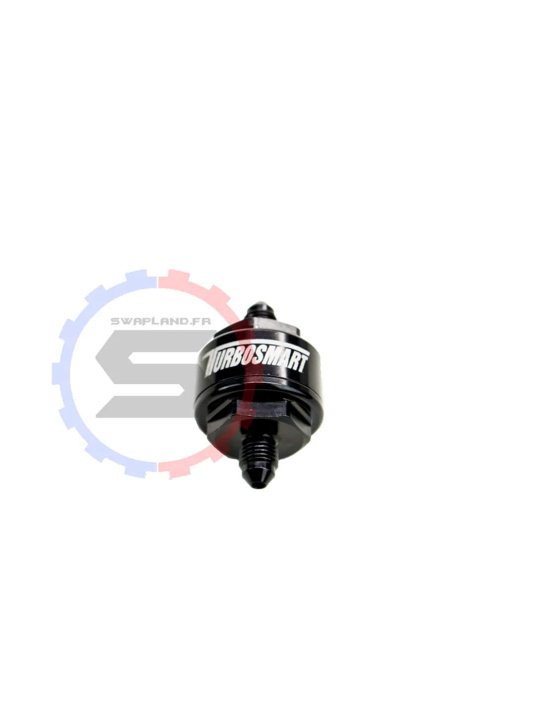 Filtre d'alimentation en huile Turbosmart pourTurbo avec filtre à tamis lavable en inox avec un disque plissé de 44 microns. Entrée et sortie mâle en dash 4