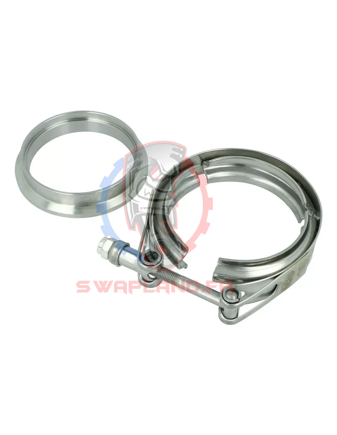 Le kit comprend un collier v band et une flange en inox pour descente en 76 mm.