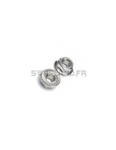 Ecrou M8 hexagonal inox avec embase et collerette crantée
