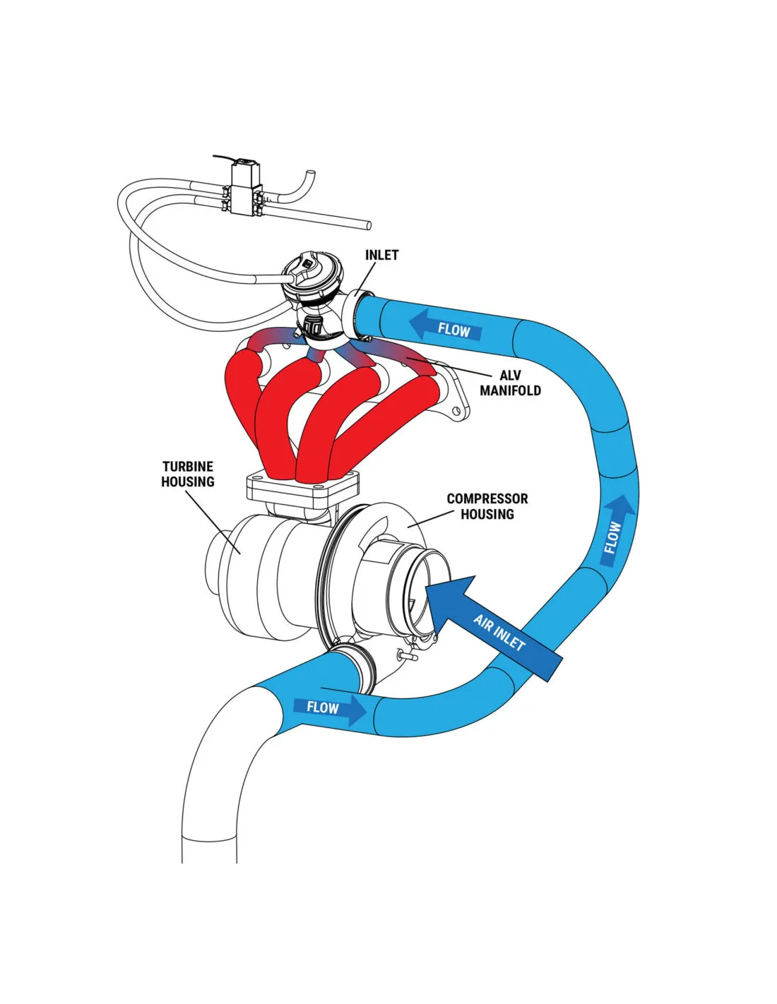 Cette valve anti-lag réduit considérablement le temps de réponse du turbo. Elle s'ouvre en dépression pour que l'air sortant du turbo soit dévié directement dans le collecteur d'échappement.