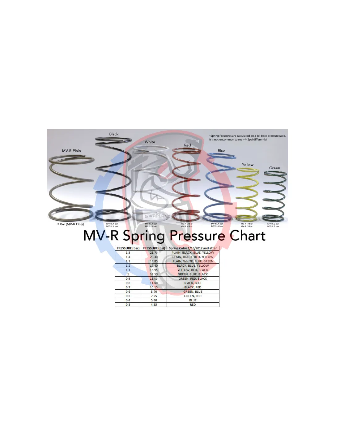 Attention les tests de pression Tial sont réalisés dans des conditions spéciales, une marge d'erreur d'environ 0.13bar peut être observée selon vos propres conditions de montage