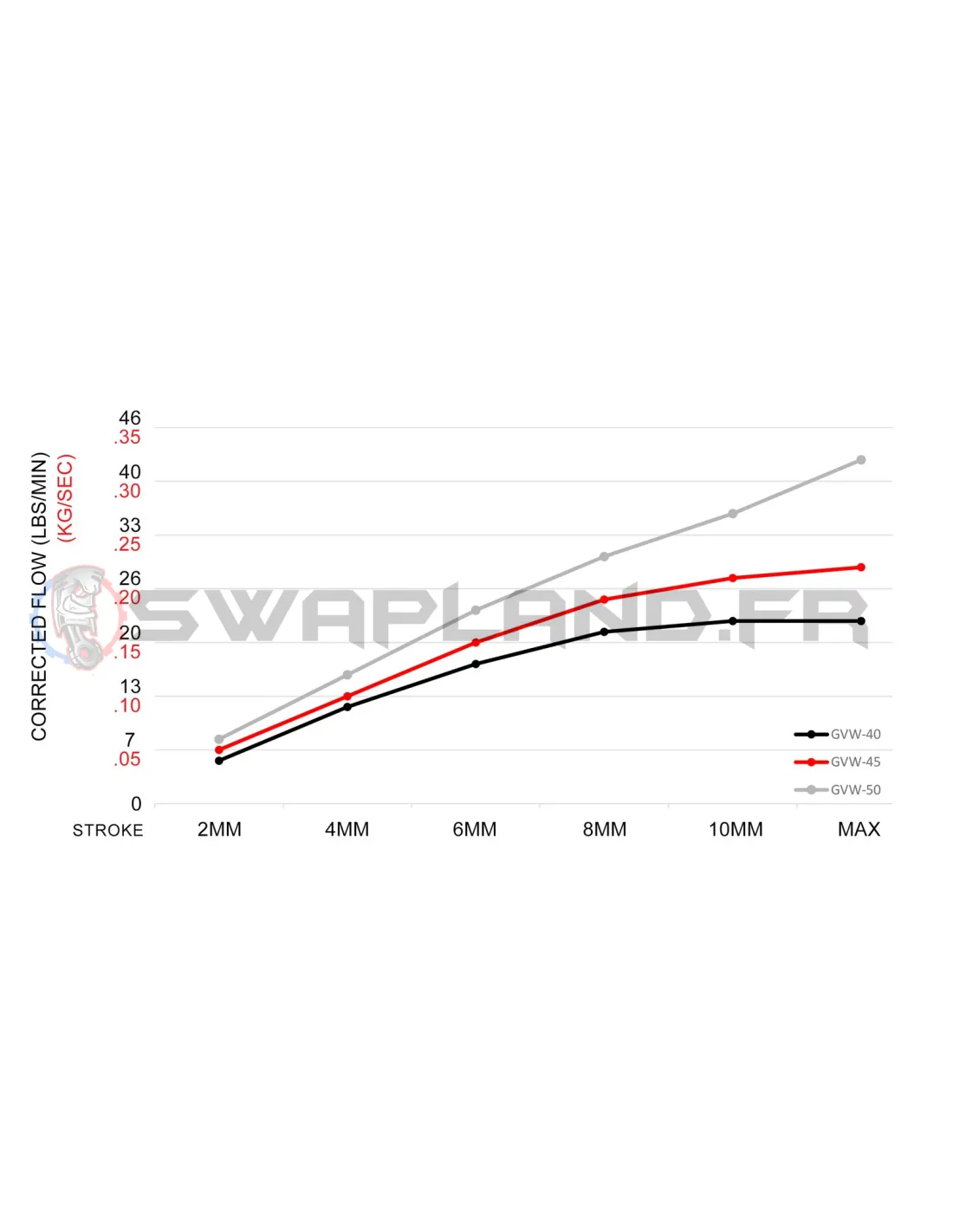 La wastegate Garrett GVW-40 Rouge est moulée dans de l'acier inoxydable résistant aux hautes températures et elle est conçue pour résister à des températures de gaz maximum 1050 C°.