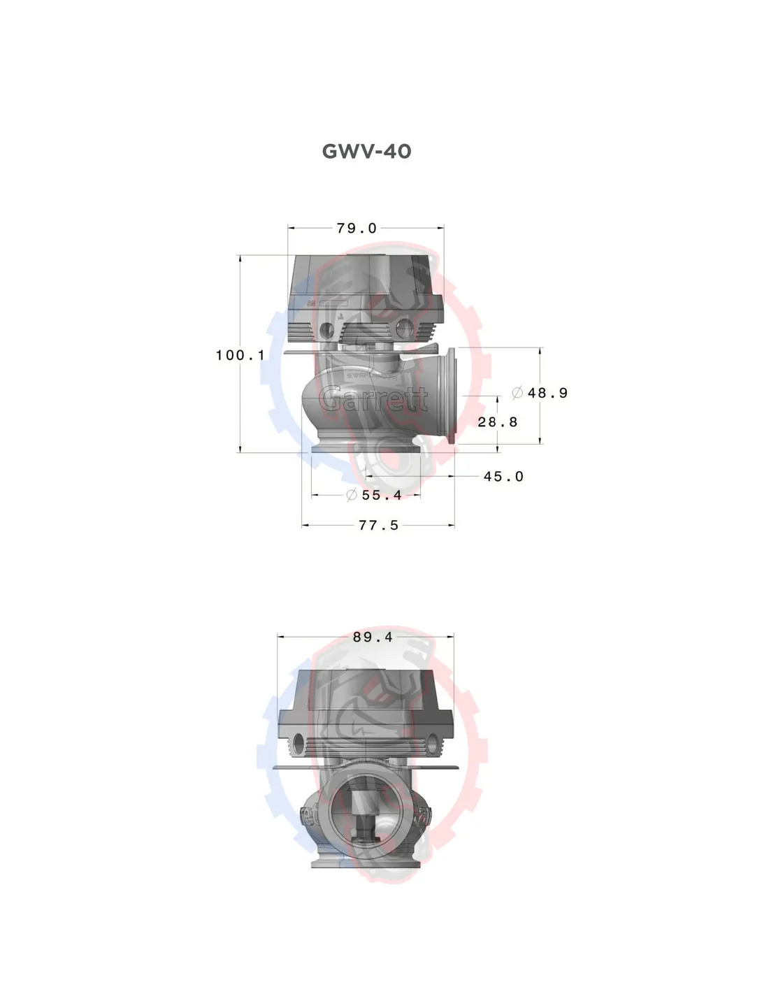 La wastegate Garrett GVW-40 Noir est moulée dans de l'acier inoxydable résistant aux hautes températures et elle est conçue pour résister à des températures de gaz maximum 1050 C°.