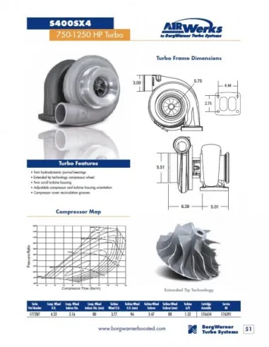 Turbo Borgwarner Airwerks S400SX4 AR 1.10 TwinScroll 176806