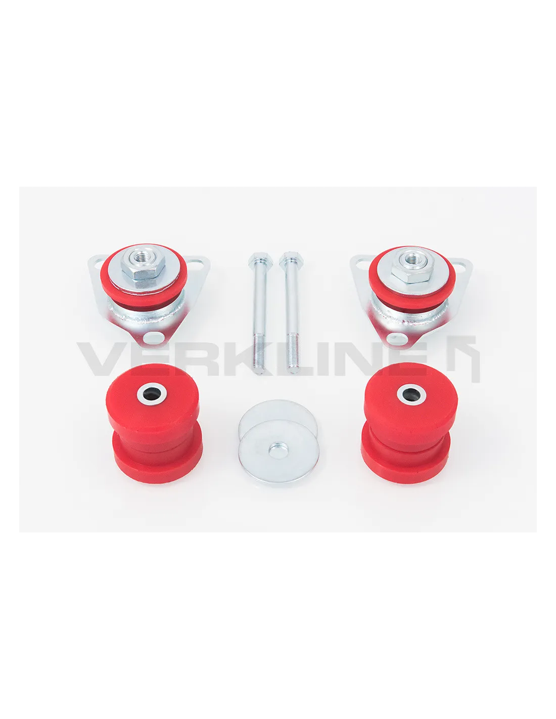 Coussinets polyuréthane berceau avant et coussinets polyuréthane pour Audi 100 / S4 / S6 / UrS4 / UrS6 ( C4 ). Toutes les pièces métalliques à l'avant et à l'arrière du kit sont exposées chacune par une couche de polyuréthane de dureté routière qui empêche les vibrations de pénétrer dans le châssis.