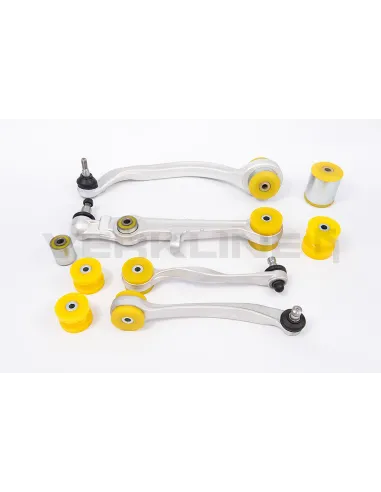 Jeu complet de bagues en polyuréthane NOIR pour les triangles avant - jeu de 10 piÚces. Bras non inclus. Les bagues en polyuréthane fonctionnent idéalement dans les suspensions de performance. Les bagues de suspension en caoutchouc sont un compromis éprouvé dans les véhicules de performance. Lorsque de la puissance supplémentaire est ajoutée, les pneus de taille plus, les bagues OEM ou en caoutchouc ont tendance à exercer des contraintes au-delà des limites de conception. Les bagues en polyuréthane sont suffisamment solides pour contrÎler le mouvement et maintenir l'alignement des roues.