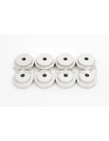 Débarrassez-vous de vos anciennes bagues en caoutchouc et insérez celles en aluminium qui augmenteront la stabilité de la voiture dans le coin. Les bagues de sous-châssis en aluminium donneront à votre suspension la possibilité de maintenir la géométrie souhaitée sous les forces pendant que la voiture manœuvre sur la route. Maintenant, le sous-châssis ne se déplacera pas et la voiture se remplira beaucoup plus fermement en tenant le carrossage, la chasse et d'autres configurations de géométrie souhaitées. Conçu pour l'axe avant Audi V8 D11 et Audi 200 C3 (type 44).
