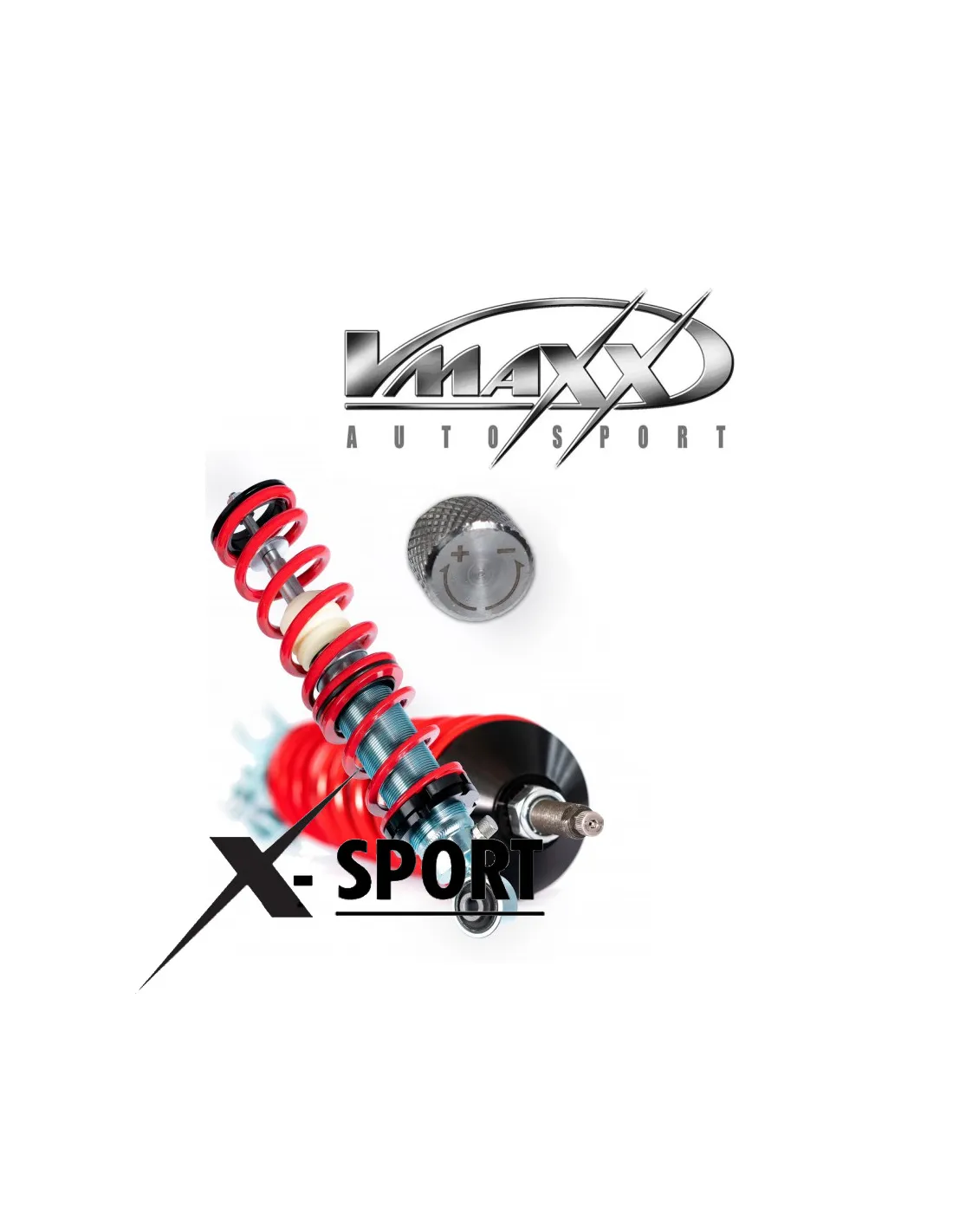 V-MAXX Combinés filetés — Rabaissement : avant -30mm, arrière -45mm. — Compatible : AUDI A3 (8P) (Ø55mm Front shocks), SEAT LEON (1P1) (Ø55mm Front shocks), VOLKSWAGEN GOLF V (1K) (Ø55mm Front shocks).