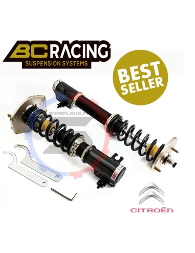 | Avant : Avec coupelle réglable carrossage quand c’est possible | Monotube avant inversé avec coupelle rotulée carrossage réglable |