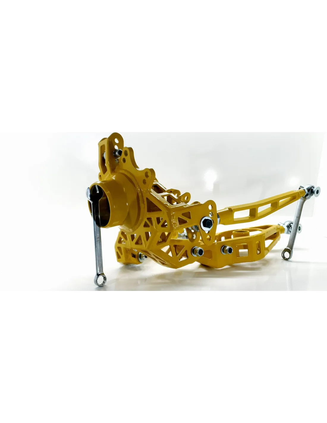 Ce kit présente une géométrie bien supérieure à celle de la suspension d'origine et peut accueillir deux étriers de frein par roue.