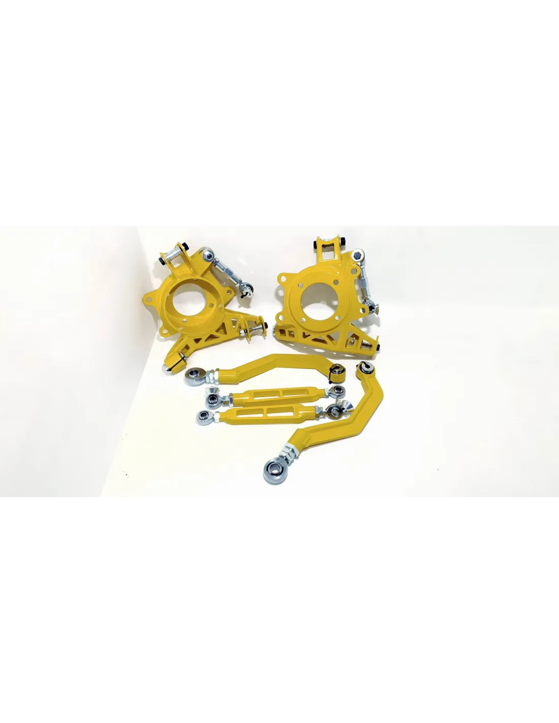 Ce kit présente une géométrie bien supérieure à celle de la suspension d'origine et est compatible avec deux étriers de frein par roue.