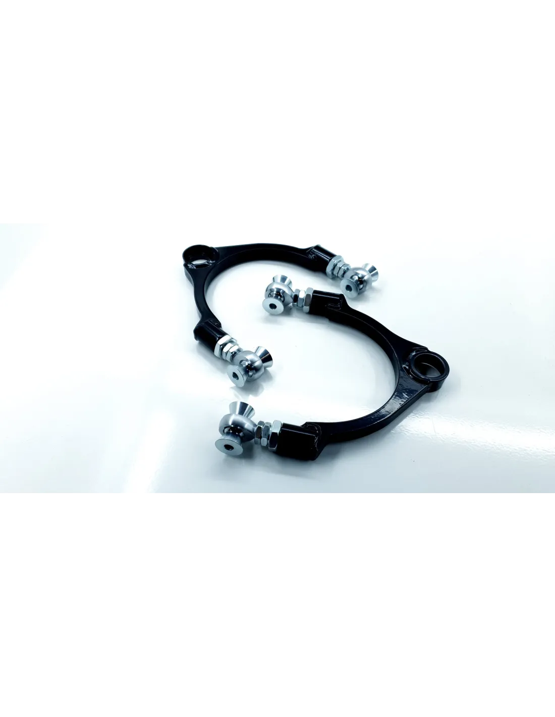 Bras entièrement réglables sur deux boulons filetés. Réglage facile du carrossage.