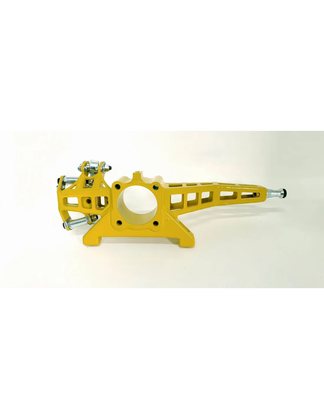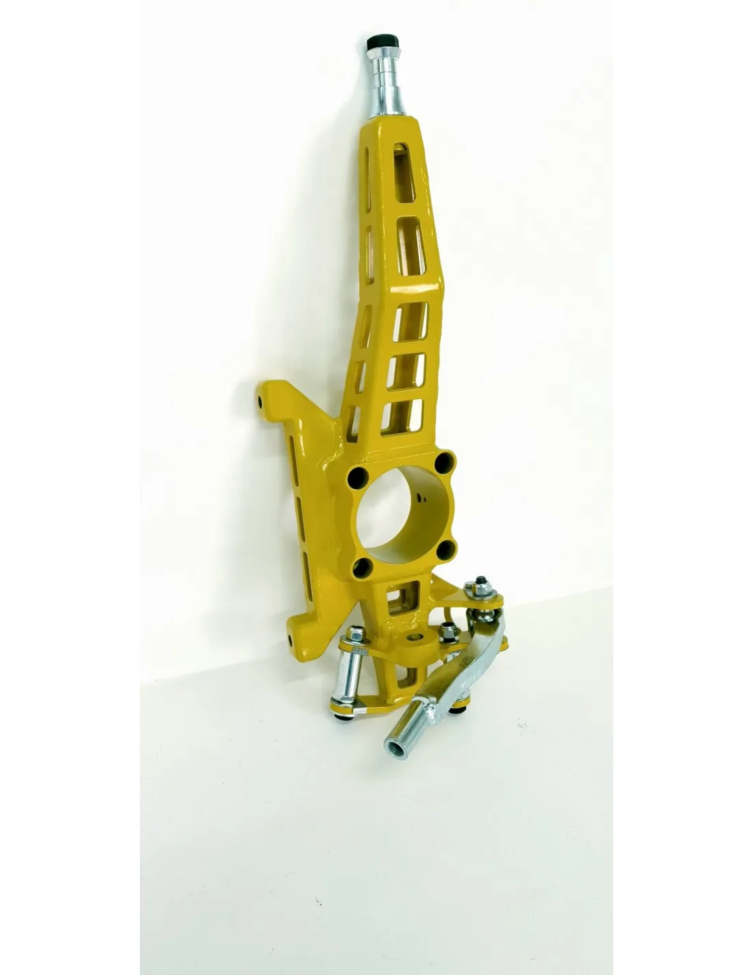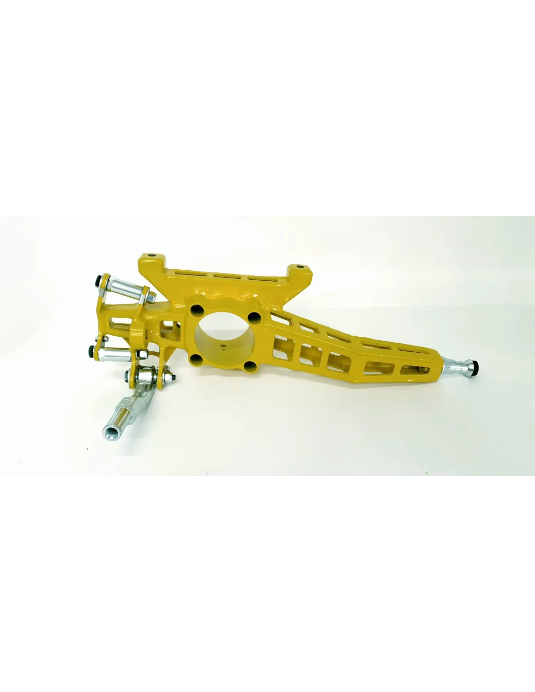 La crémaillère de direction est repositionnée de 100 mm vers l'avant par rapport à sa position d'origine et est plus haute de 22 mm par rapport à sa position d'origine. Le carter d'huile du VR38DETT doit être modifié.