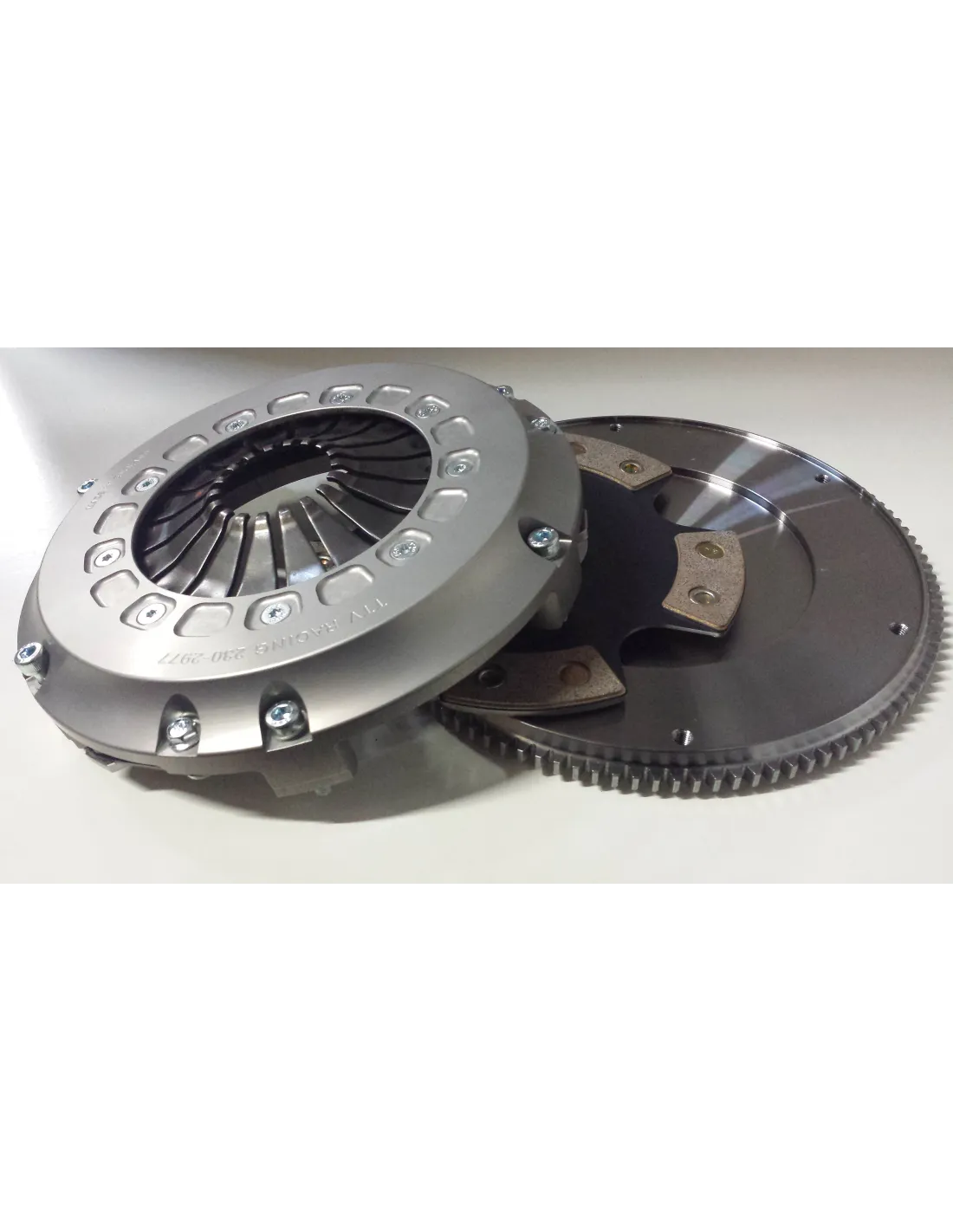 Ce kit comprend un volant moteur acier de chez TTV taillé dans la masse, un disque d'embrayage renforcé cerametalic 230mm et un plateau aluminium taillé masse pour votre mini cooper S F56.