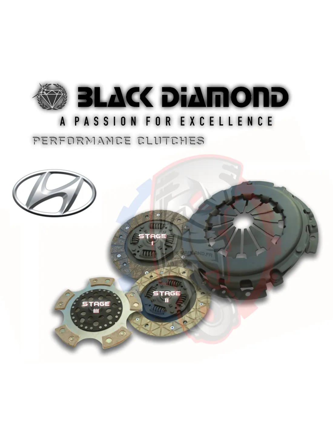 Les embrayages renforcés Black Diamond pour  Hyundai ix20 sont fabriqués dans des matériaux de friction de haute performance. Cette gamme d'embrayages renforcés se déclinent en trois stages différents pour répondre au besoin de votre préparation moteur.