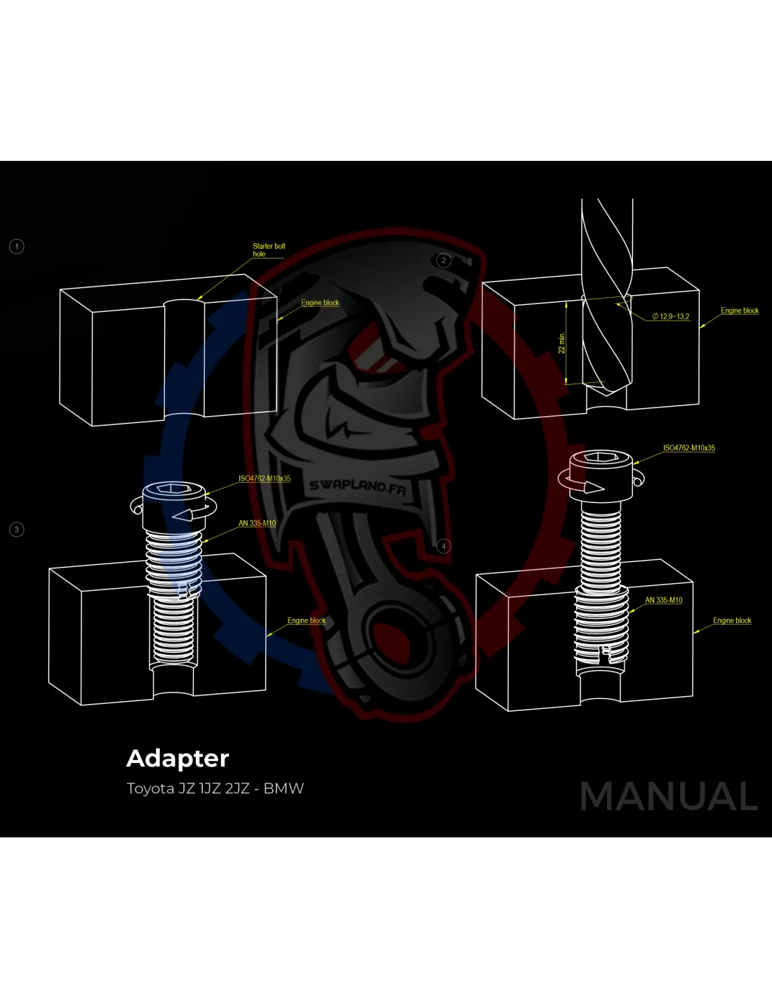 - Épaisseur de la plaque d'adaptation de boîte de vitesses : 20 mm.