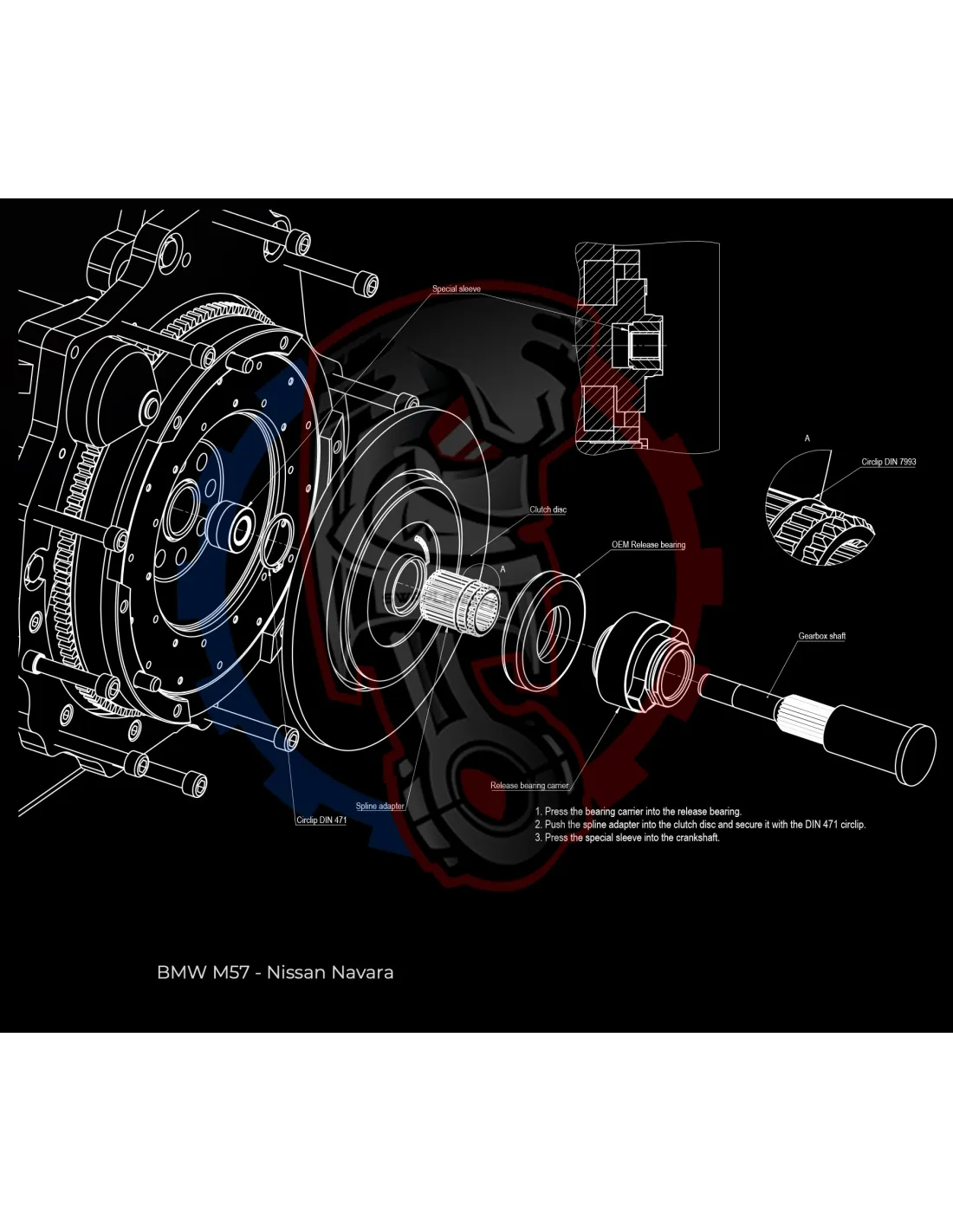 - Détail produit : Plaque adaptateur de boîte de vitesses en aluminium, boulons d'adaptateur de boîte de vitesses, adaptateur de roulement de butée et adaptateur cannelé Nissan - BMW.