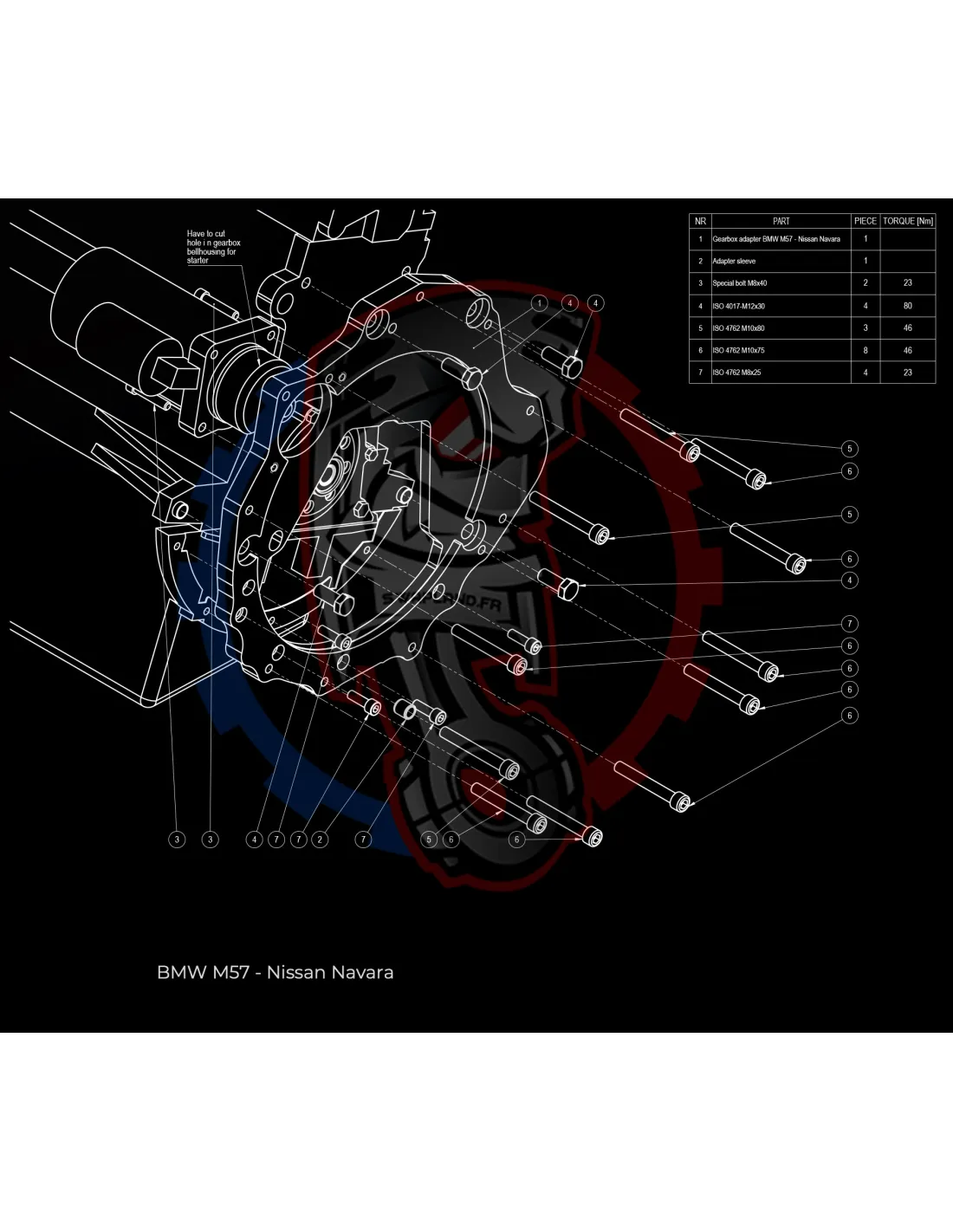 Plaque de conversion de boîte de vitesses Nissan Navara YD25DDTi /D40 pour moteur BMW M57 3L Diesel :