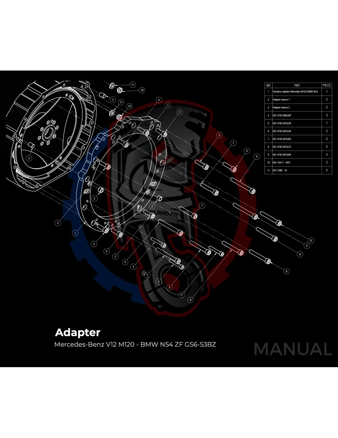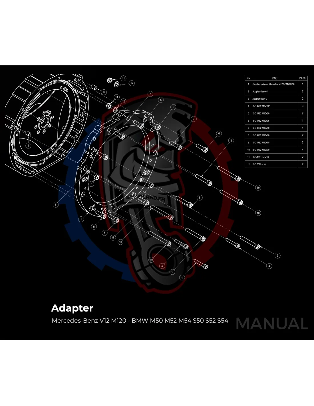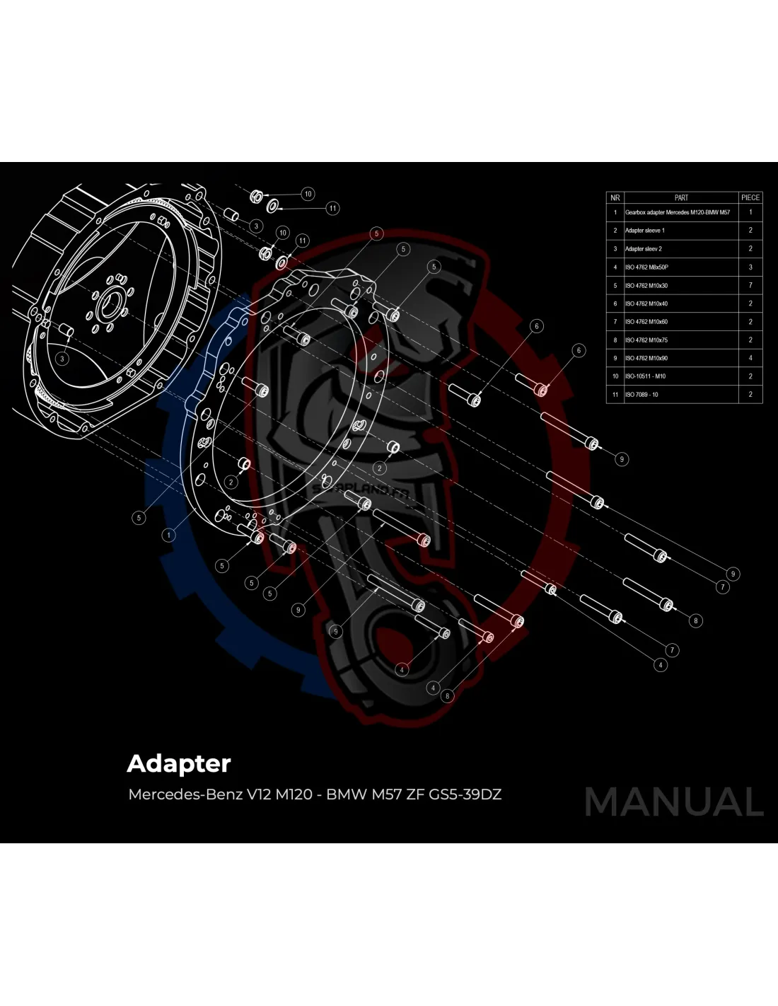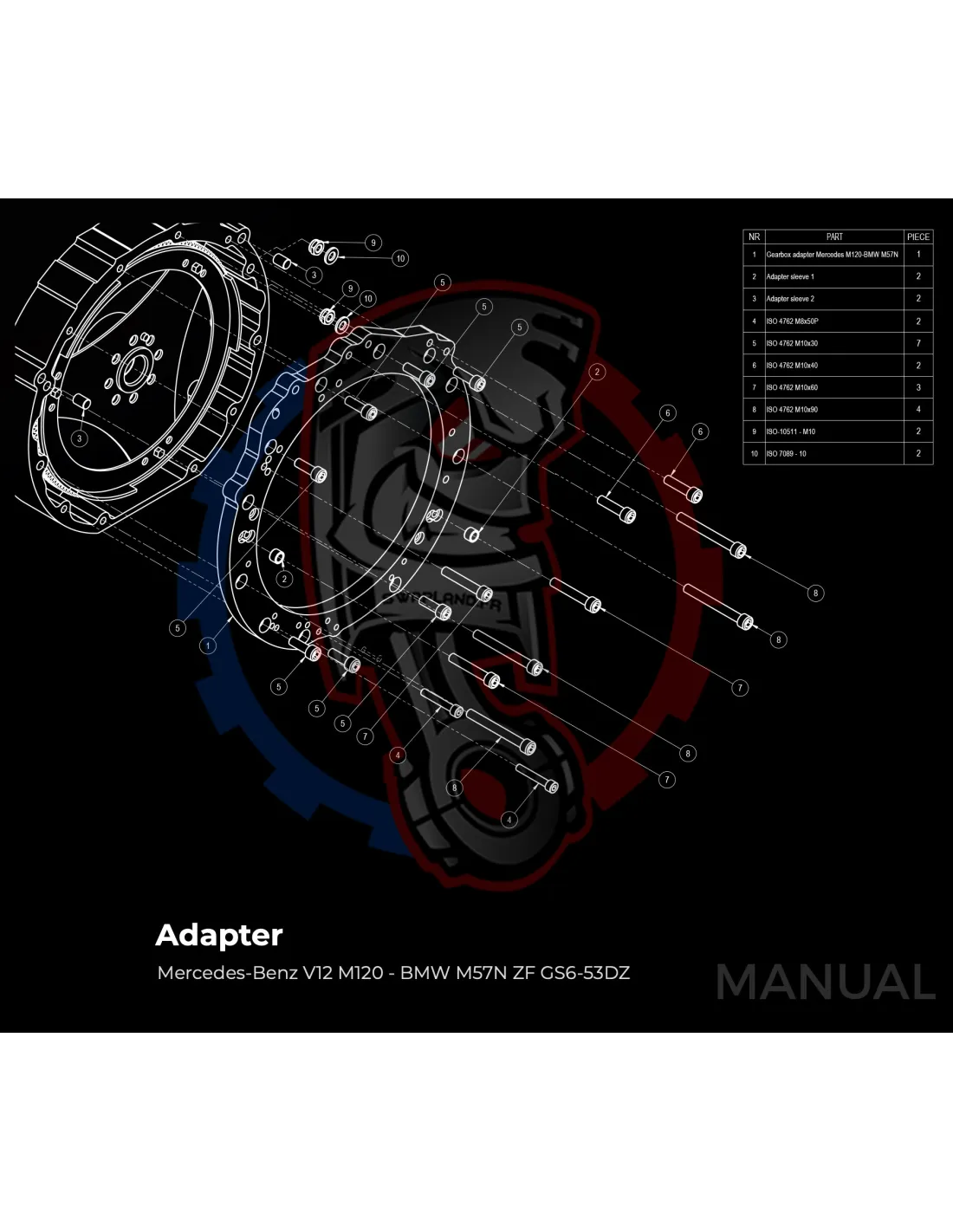 Plaque d'adaptation pour boite de vitesses BMW DCT 8HP (manuelle et automatique) sur moteur Mercedes-Benz V12 M120.