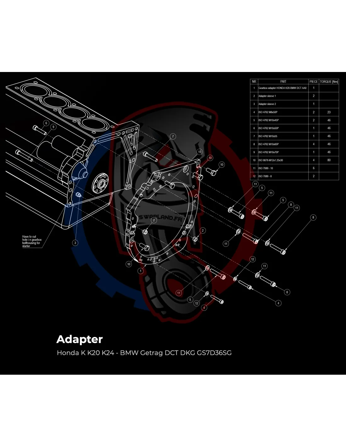 Plaque de conversion de boîte de vitesses F87 M2 / F80 M3 F82 / F83 M4 DCT DKG GS7D36SG R6 (position du moteur d'origine) pour moteur Honda K K20 K24 :