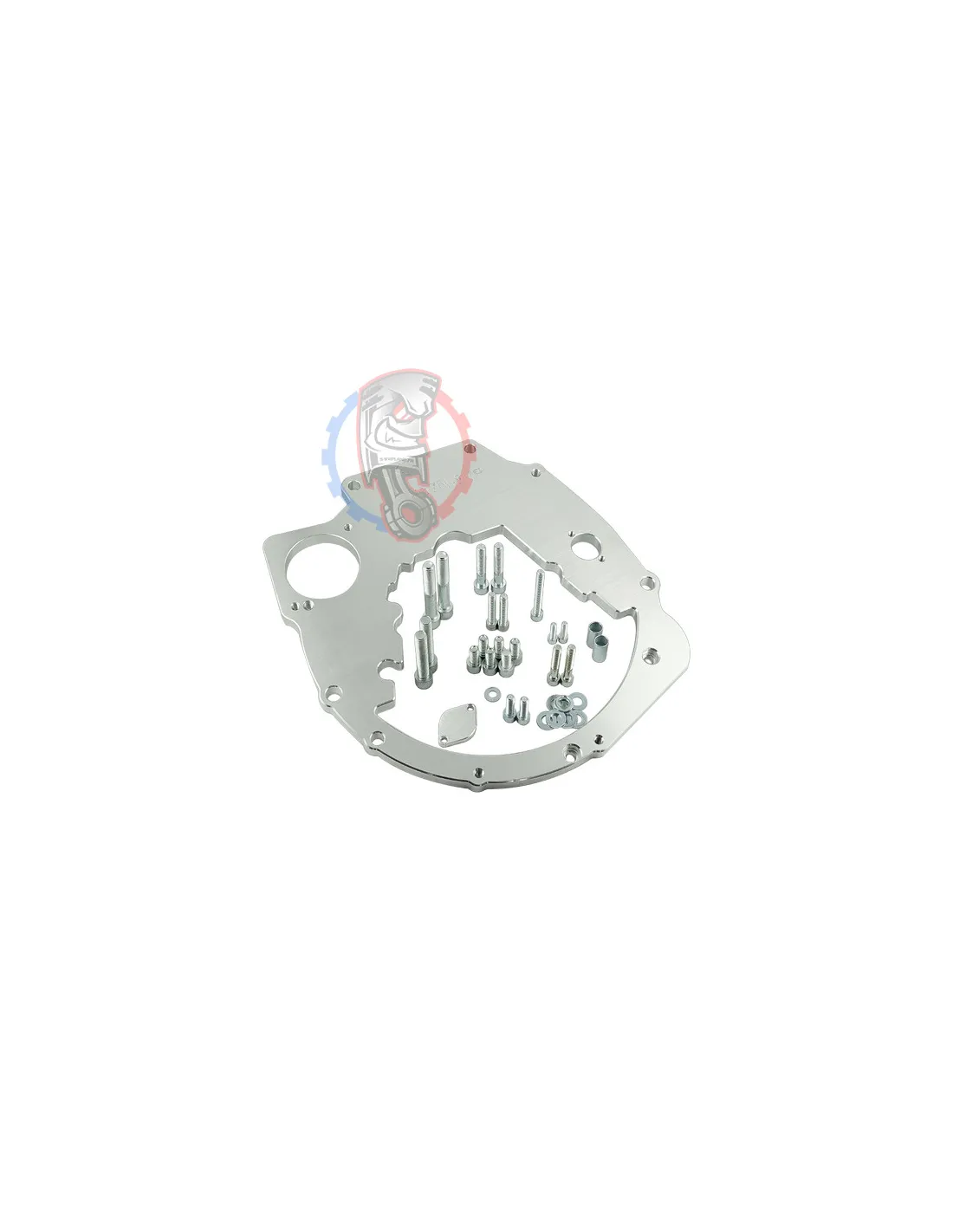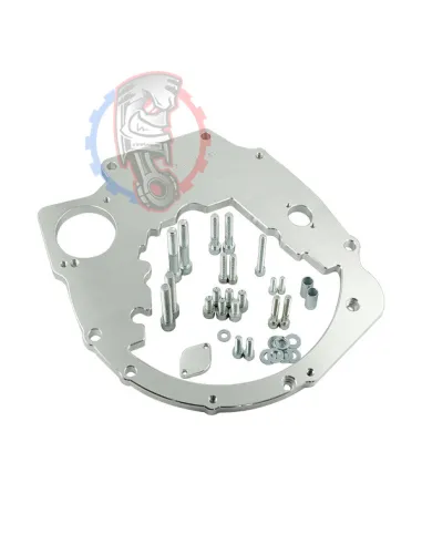 - Détail produit : Plaque d'adaptation de boîte de vitesses en aluminium et boulons de la plaque d'adaptation de boîte de vitesses.