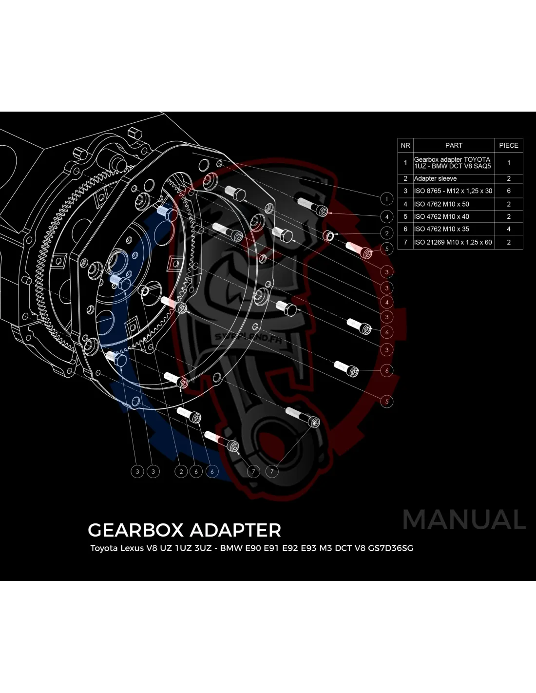 Plaque de conversion de boîte de vitesses BMW E90 E91 E92 E93 M3 V8 GS7D36SG DCT DKG pour moteur Toyota Lexus V8 UZ 1UZ 3UZ :