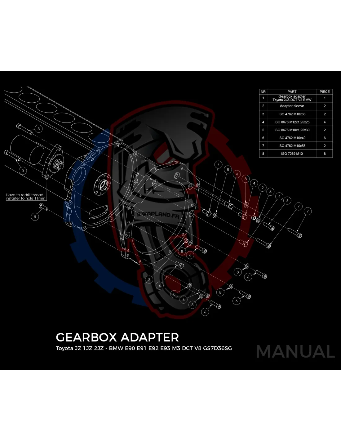 Entretoise boîte de vitesses moteur Toyota JZ 1JZ 2JZ boîte de vitesses BMW GS7D36SG DCT DKG V8