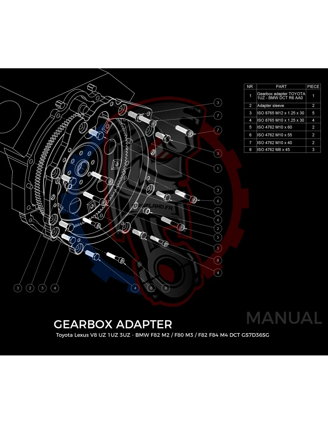Plaque de conversion de boîte de vitesses BMW F87 M2 / F80 M3 F82 / F83 M4 DCT GS7D36SG R6 / BMW N54 GS6-53BZ 335i 135i 535i pour moteur Toyota Lexus V8 UZ 1UZ 3UZ :