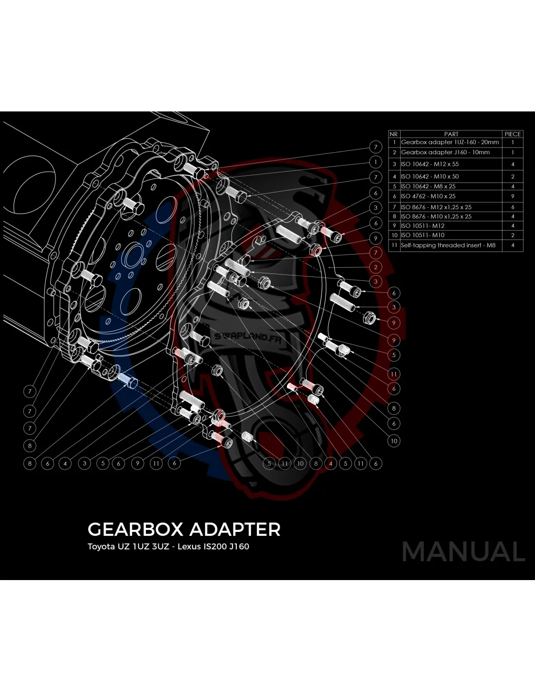Plaque d'adaptation en aluminium conçue pour la conversion du moteur Toyota Lexus V8 UZ 1UZ 3UZ avec la boîte de vitesses Aisin AZ6 J160 provenant de la Lexus IS200 de première génération.