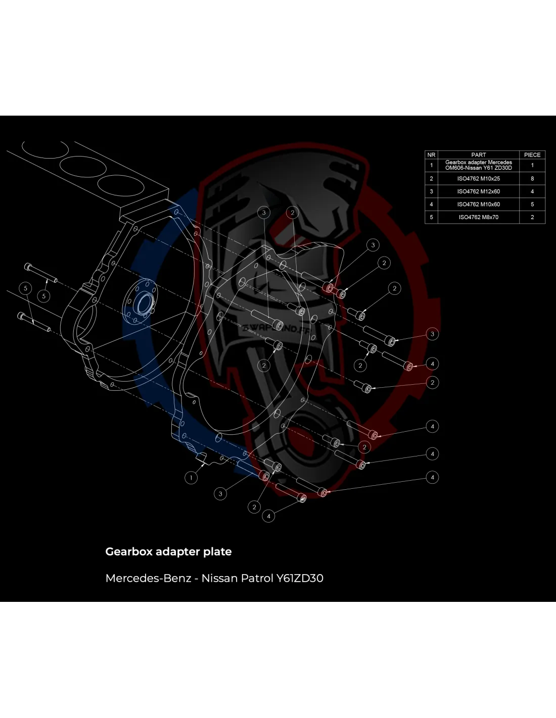 Plaque de conversion de boîte de vitesses Nissan Patrol Y61 ZD30 pour moteur Mercedes-Benz OM605 OM606 :