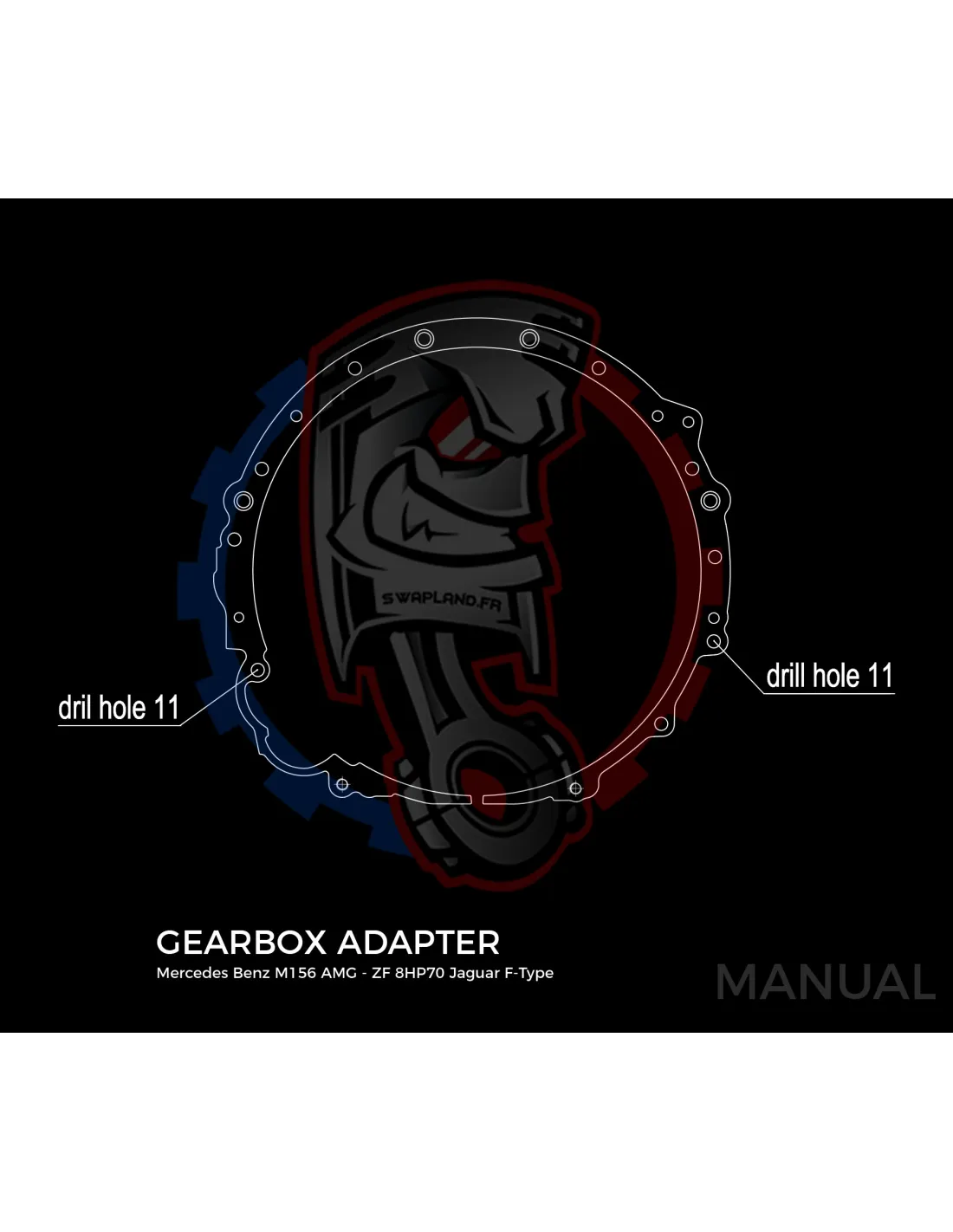 - Épaisseur de la plaque d'adaptation de boîte de vitesses : 25 mm.