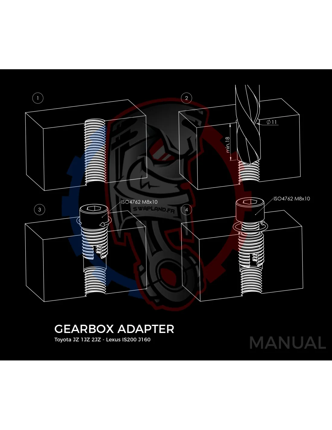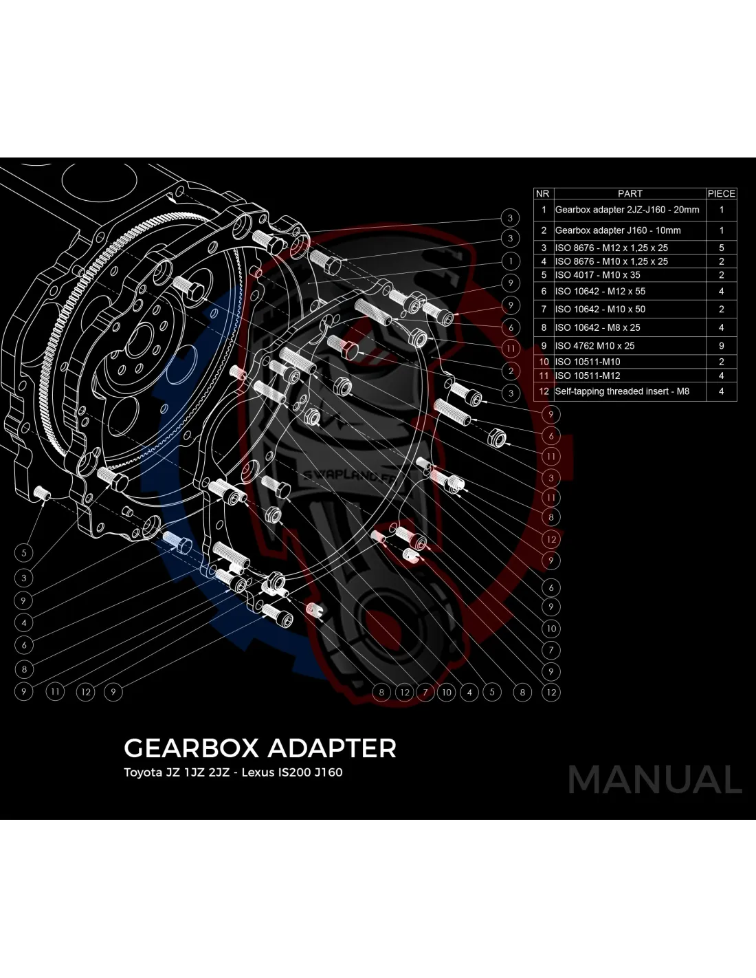 Plaque de conversion de boîte de vitesses Lexus IS200 J160 Aisin AZ6 1G-FE (1ère génération) pour moteur Toyota JZ 1JZ 2JZ :