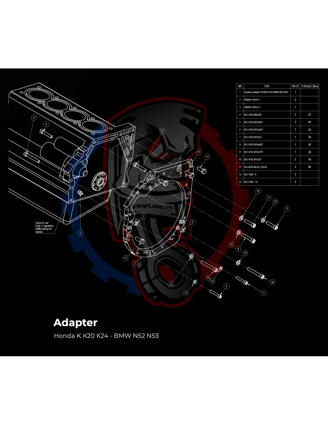 Plaque d'adaptation en aluminium conçue pour la conversion du moteur Honda K K20 K24 avec la boîte de vitesses BMW.